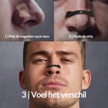 Antwoord 1: De magnetische neusstrips verbeteren de luchtstroom door je neus door de neusholtes opent te houden, terwijl de neusclip comfortabel in je neus past om de ademhaling verder te optimaliseren. Samen zorgen ze voor een effectievere ademhaling tijdens de slaap en verminderen ze snurken.